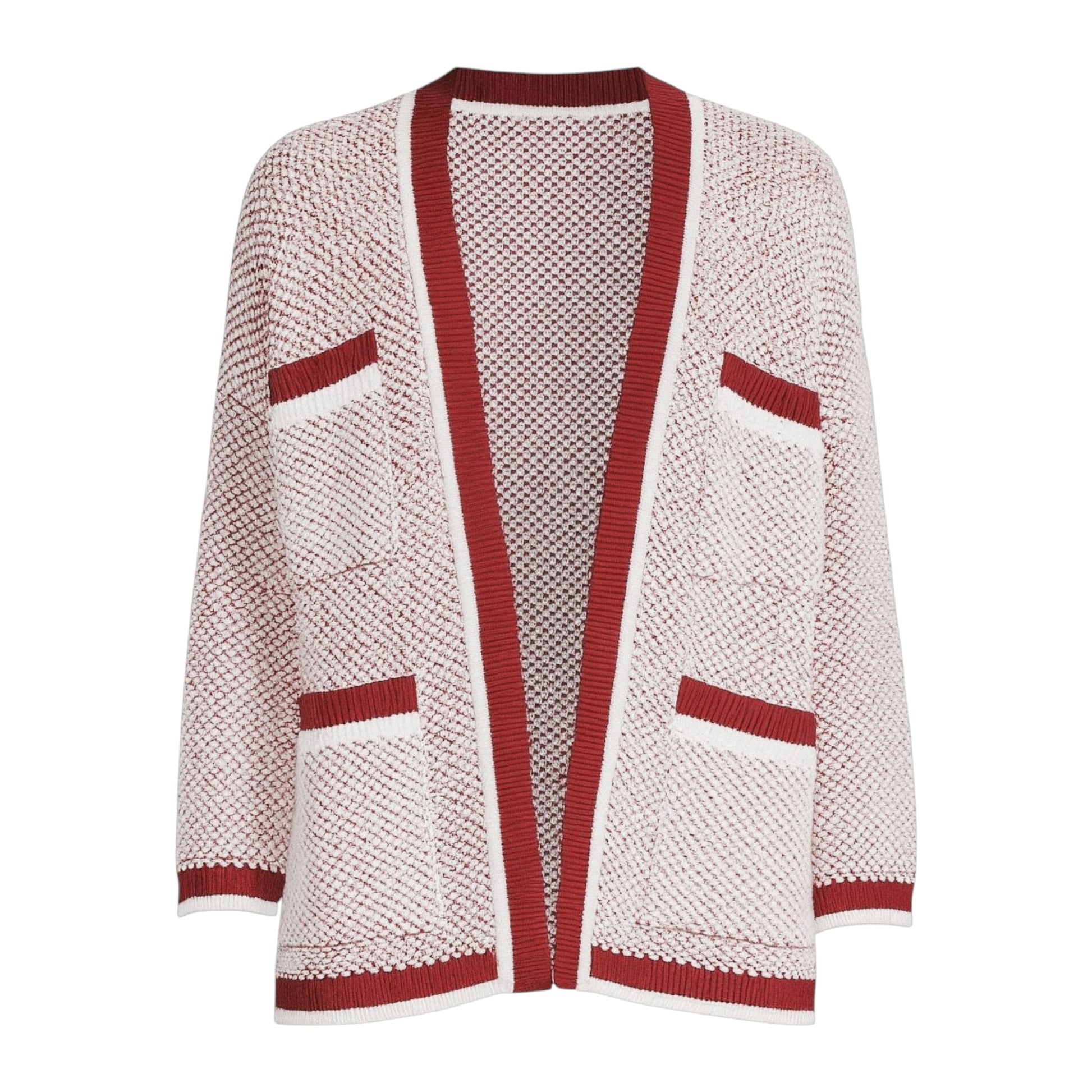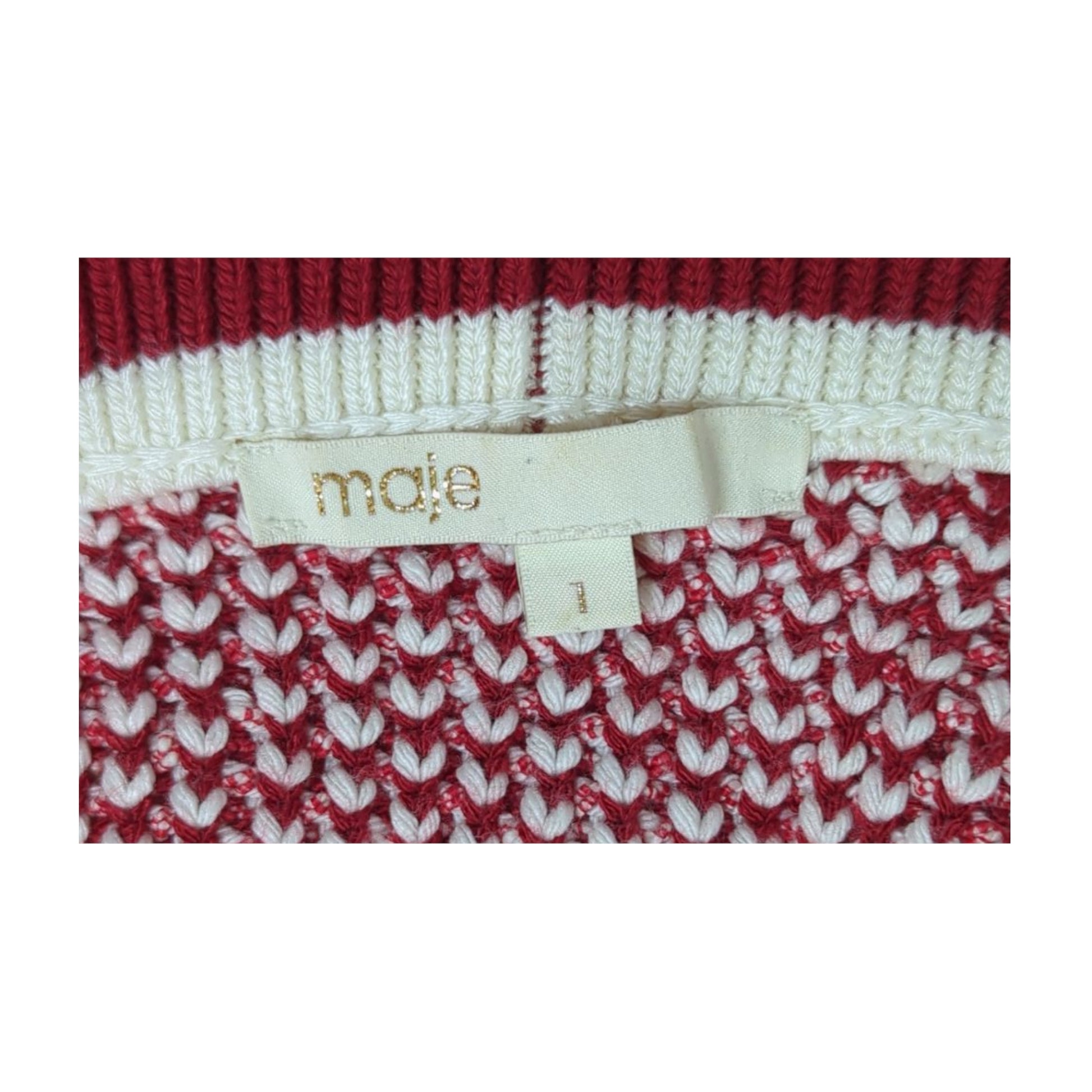 Elevate your winter wardrobe with this Parisian-inspired cardigan from Maje. Crafted in red wool, it features a bold patterned knit and four functional external pockets. A refined blend of comfort and style, perfect for layering through the cooler months.